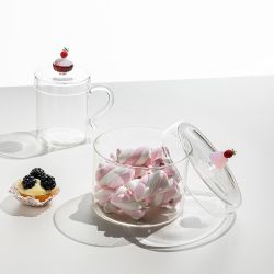 ¿Te apetece un postre? Esta escarola de cristal de Ichendorf está decorada por fuera con pequeños pasteles de vidrio de borosilicato.