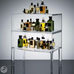 Las líneas rectas y la sinuosidad caracterizan este mueble contemporáneo realizado en polimetilmetacrilato, un material plástico especialmente resistente a los agentes atmosféricos. Su diseño es versátil y se presta a diversos contextos de decoración: cómoda para el dormitorio, mueble de baño o contenedor de servicio para el jardín o la terraza.