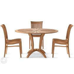 La parte superior redonda, equipada con un agujero para el paraguas, mide un diámetro de 125 cm. La altura de la mesa fija es de 76 cm.
