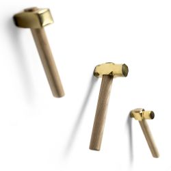 Los percheros Bastaaa originales de Mogg decoran la casa con un estilo lúdico e irónico. El mango de cada martillo-colgador es de madera de fresno aceitado y la punta de metal con acabado brillante.