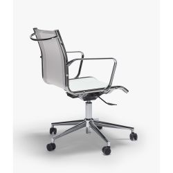 Tiene una estructura de acero cromado . El asiento y el respaldo están tapizados en malla ; Los reposabrazos son de aluminio acabado cromo .