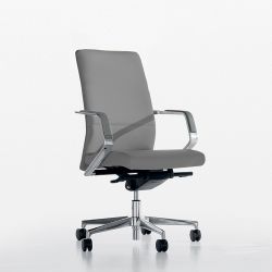 Sillón de oficina con respaldo bajo. Su diseño destaca por la esencialidad y elegancia de las formas.