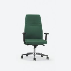 Silla ejecutiva con respaldo alto y altura ajustable. Sus líneas son especialmente limpias y sencillas, con una sencilla banda decorativa en la parte superior del respaldo.