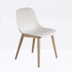 La Fiber Side Chair combina la estructura de roble con una carcasa realizada con un innovador material compuesto obtenido a partir de un 25% de fibra de madera y el resto de plástico. El efecto obtenido es un asiento con una textura inusual.