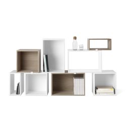 Los módulos de la línea Stacked de Muuto son funcionales y versátiles. Están diseñados para crear soluciones de decoración personalizadas para el hogar y la oficina: combinando elementos de diferentes tamaños y colores, se pueden diseñar unidades de almacenamiento, librerías o sistemas de estanterías. Son adecuados para el salón, la zona de noche o incluso espacios profesionales.