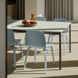 Completamente hecha de chapa de roble o fresno lacado, Visu tiene una estructura sólida con cuatro patas y está disponible en una amplia gama de colores. La laca utilizada para pintar Visu di Muuto es a base de agua para minimizar la emisión de sustancias químicas.