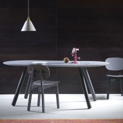 Esta mesa de diseño está realizada con materiales y criterios ecosostenibles, la madera utilizada procede de zonas de reforestación.