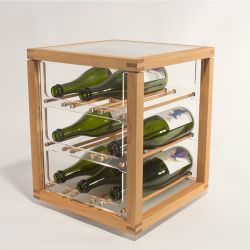 El módulo base mide 33 x 33 x h 39 cms y puede contener hasta 9 botellas.