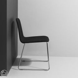 Apilable hasta 6 unidades, Just cuenta con una estructura tipo trineo de metal, disponible cromada o barnizada en negro.