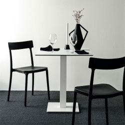 Presentada en una amplia gama cromática, esta silla moderna está realizada en polipropileno, material plástico atóxico con propiedades anti manchas.