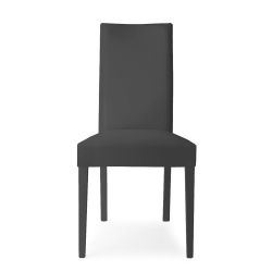 La estructura de haya está disponible teñida o lacada. El asiento y el respaldo están acolchados y revestidos en símil piel, en varios colores.