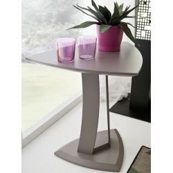 La tapa en forma de triángulo mide 60x48 cms. La mesita moderna mide 52 cms de altura.