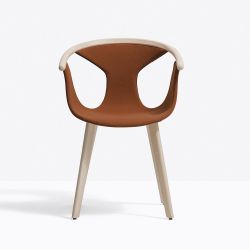 El asiento de polipropileno reforzado con fibra de vidrio está acolchado con espuma de poliuretano y revestido con tejido ignífugo. Un respaldo curvo de fresno remata la carcasa con clase.