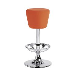 La estructura se compone por una columna sobre base central de 40 cms de diámetro y por un cómodo reposapiés, todo en acero. La base está disponible en los siguientes acabados: barnizado en negro, cromado, satinado o barnizado en varios colores.