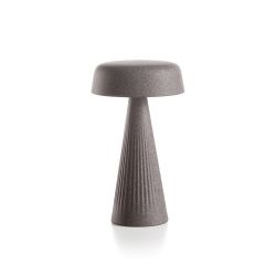 Fabricada en color gris arcilla , esta lámpara de mesa está equipada con luz LED y es recargable con un cable USB (incluido).