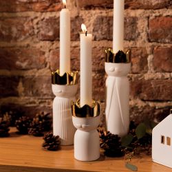 Un pequeño toque de elegancia para decorar tu hogar durante las fiestas navideñas. Este portavelas está hecho a mano en porcelana esmaltada en blanco mate con detalles en dorado.