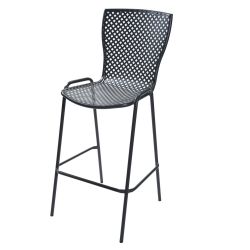 La estructura de acero gracias a los tratamientos anticorrosión y la pintura de poliéster, un material elástico resistente a la abrasión y a los agentes químicos y físicos, hace que el taburete sea ideal para amueblar espacios exteriores .