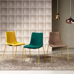 Silla de diseño refinado y elegante en la versión efecto latón satinado. Perfecta para decorar la cocina o el comedor con su aire original y juvenil.