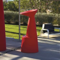 Las propiedades termoplásticas del polietileno reciclable hacen que este taburete Made in Italy sea ideal también para ambientes exteriores, como terrazas o jardines. El asiento y el reposapiés cóncavos y ergonómicos hacen que sentarse sea aún más cómodo.