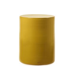 El taburete es de terracota ocre con acabado brillo y mide (Ø x H): 37 x 46 cm.
