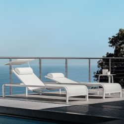 El asiento y el respaldo son reclinables mediante un especial sistema de deslizamiento y están fabricados en textilene, una fibra sintética extremadamente resistente a los agentes atmosféricos y a los rayos UV.