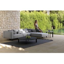 La alfombra Ribs está fabricada con hilo de fibra sintética, apta para uso exterior ya que es resistente a los agentes atmosféricos ya la humedad. De hecho, la superficie tiene un tratamiento hidrófugo, antimanchas y antimoho.