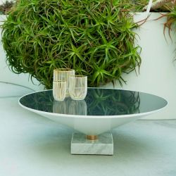 Con forma de elegante copa, Flute es una mesa de centro con un diseño fuerte y refinado. Propuesto en dos alturas, es perfecto junto al sofá o, en la versión baja, en el centro de la sala de estar.