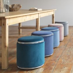 La estructura es de cartón y acero, mientras que la tapicería es de terciopelo, disponible en varios colores de moda.
