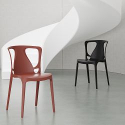 Caracterizada por un juego de sólidos y vacíos en el respaldo, la silla Barcelona es ideal tanto para interiores como para exteriores. Diseñada para espacios privados y públicos, como bares y restaurantes.