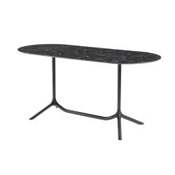 Una base doble, disponible con tapa rectangular u ovalada, ideal para componer mesas en bares o restaurantes.
