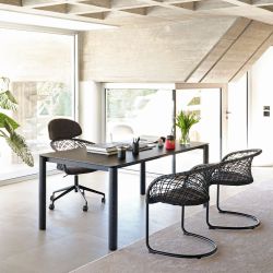 Woody también está disponible con tapa de HPL, cristal o cerámica y también en versión extensible.