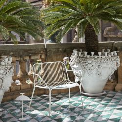Diseñados para momentos al aire libre, el sillón, el sofá y la mesa de centro de la colección Hiray amueblan con elegancia tanto el exterior de la casa como los espacios exteriores de bares y discotecas.
