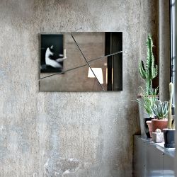 Un miroir moderne au design minimaliste, doté de deux joints diagonaux qui « divisent » la forme en quatre parties, préservant ainsi l'intégrité parfaite du périmètre.