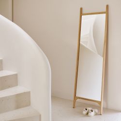 Le cadre du miroir est en chêne teinté naturel. Chaque miroir PI est fini à la main.