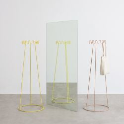 "Une couronne flottant dans les airs" est l'idée qui a inspiré la conception de ce cintre. L'aspect léger et essentiel s'adapte facilement à différents contextes d'ameublement : dans l'entrée, dans la chambre ou même dans la salle de bain.