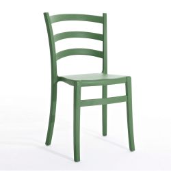 Cette chaise s'inspire des lignes classiques de la chaise rustique appelée Venezia, mais est réalisée avec des matériaux absolument modernes ; La chaise Italia est en effet entièrement réalisée en polypropylène, dans différentes couleurs mates, avec un traitement de surface « soft touch » qui rend la chaise douce au toucher, comme si elle était veloutée.