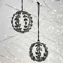 Réalisées en métal peint anthracite, elles sont recouvertes de petits diamants assortis. Equipé d'un ruban pour accrocher.