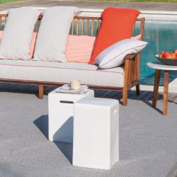 Solide et au design moderne, cette table basse convient à la décoration des espaces extérieurs , du jardin à la terrasse. Doté d'une double fonction, il peut également être utilisé comme tabouret bas.