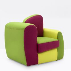 Fauteuil au design particulier adapté aux enfants. Le design est ludique et irrégulier ; les volumes sont doux et les pièces différentes les unes des autres. Cette irrégularité est accentuée par les surfaces, colorées avec des blocs de différentes nuances.