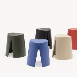 La forme du tabouret AX s'inspire du moment où un tronc d'arbre, frappé d'une hache, se fend en deux. Conçu par Alessandro Stabile, Ax est un tabouret empilable, idéal pour les espaces domestiques et les espaces professionnels.