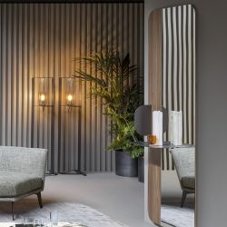 Blabla Mirror est un miroir mural pleine longueur avec étagères intégrées, conçu pour une utilisation pratique et polyvalente. Son design se distingue par son profil épuré et ses lignes courbes, enrichies par deux fines étagères métalliques décalées, parfaites comme vide-poches ou pour ranger de petits objets du quotidien.
