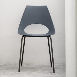 Chaise moderne en métal avec monocoque en polypropylène. Le siège se caractérise par des formes curvilignes et accueillantes, avec un trou dans la zone lombaire qui définit le dossier.