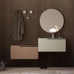 La collection d'étagères à chaussures et de meubles d'entrée Gola Up de Birex se caractérise par la forme particulière de la poignée, constituée d'une rainure avec une poignée en métal peint au goût essentiel.