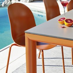 La chaise est dotée d'une structure en métal peint et d'une coque en polypropylène de la même couleur. Les matériaux sont traités pour une utilisation en extérieur.