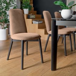 La chaise Riley de Connubia est une chaise de style moderne qui s'adapte parfaitement au décor d'une salle à manger, s'adaptant à un style contemporain ou informel. La structure est en hêtre blanchi, graphite ou bois de noyer; tandis que le siège et le dossier sont rembourrés et disponibles en trois revêtements différents.