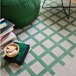 Le tapis Connubia Cek vient de la mémoire des cahiers quadrillés qui sont utilisés à l'école. Cek a toujours une base beige sur laquelle est représenté un maillage de lignes qui créent une grille orthogonale disponible dans les couleurs citron, thym et safran.