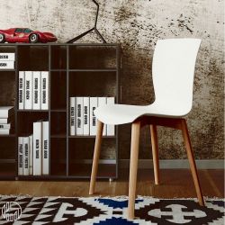 Chaise design, moderne, élégante, aux lignes sinueuses, qui convient parfaitement à la décoration de la cuisne et de la zone jour.