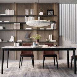 Smooth est une table rectangulaire extensible avec quatre pieds en bois de section ovale , fabriqués comme des éléments uniques qui se connectent précisément à la structure portante et au plateau.