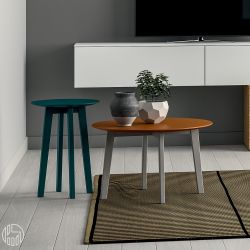 La table basse Made in Italy peut être réalisée dans une version unicolore ou avec plateau et pieds de différentes finitions. Choisissez d'abord la structure souhaitée pour les pieds, puis la finition souhaitée pour le plateau rond.
