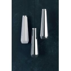 Glass Drop, comme son nom évocateur l'indique, est une lampe à suspension en forme de goutte , qui semble vouloir représenter le moment où le verre soufflé prend forme.